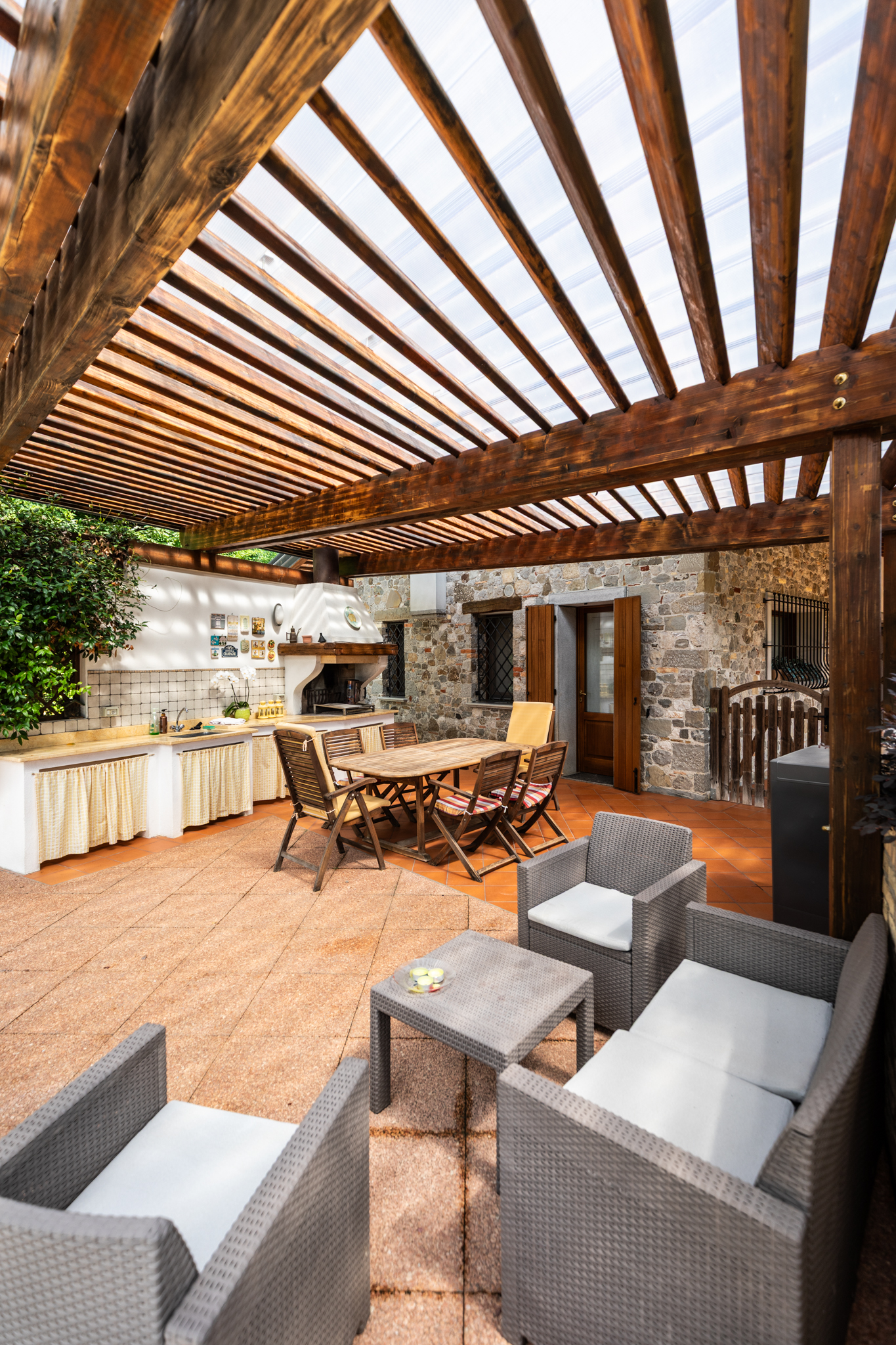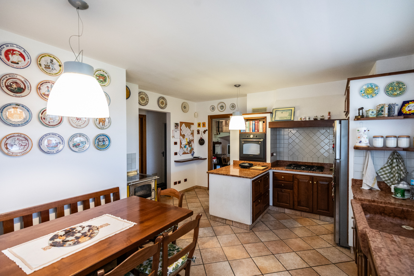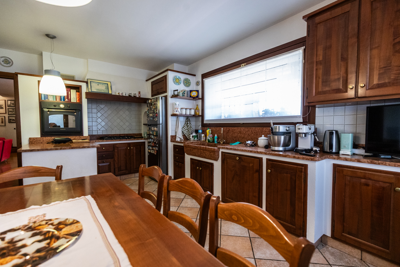 Costruita con attenzione all’efficienza energetica, la villa è dotata di infissi in legno di iroko con doppia vetrocamera, pavimentazioni in rovere perfettamente mantenute e cucine su misura in muratura, legno e marmo.