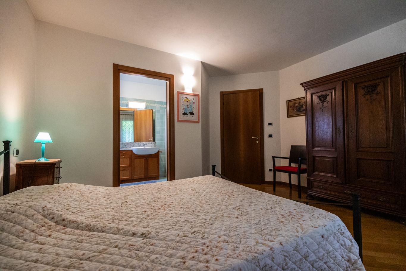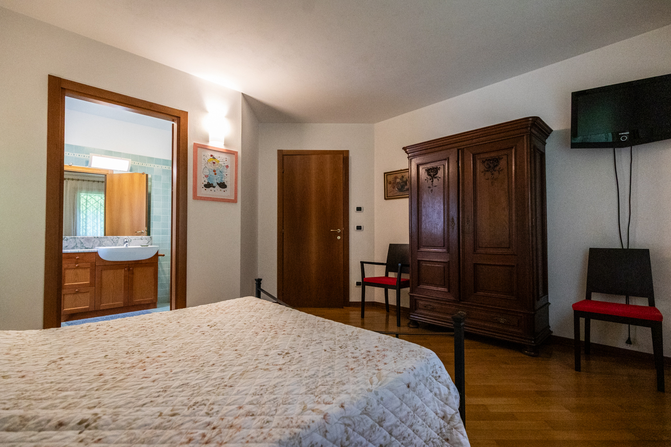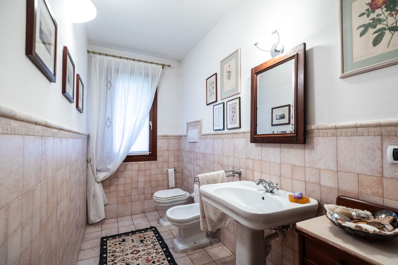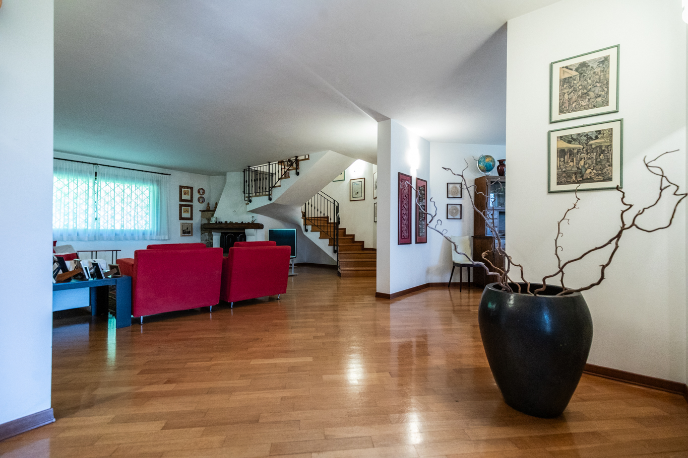 Al piano terra si trova un ingresso ampio e luminoso che introduce ad una cucina abitabile collegata direttamente al porticato attrezzato con cucina esterna, barbecue con area pergolata coperta in policarbonato. L’ampio soggiorno è arricchito da un caminetto Tonini che si affianca ad una sala da pranzo separata, mentre una camera matrimoniale per ospiti con bagno privato garantisce massima comodità per gli ospiti o per il personale di servizio. Completano il piano un ulteriore bagno, un ripostiglio e un disimpegno funzionale.